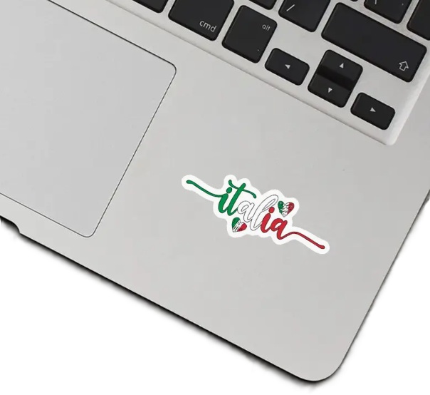 Samolepka – nápis Italia bude skvělým doplňkem vašeho laptopu, lahve na pití, kytary, lednice, helmy nebo třeba boxu s nářadím. Hravý nápis „italia“, vypadá stylově. Samolepce lze najít i další využití dle vaší fantazie.